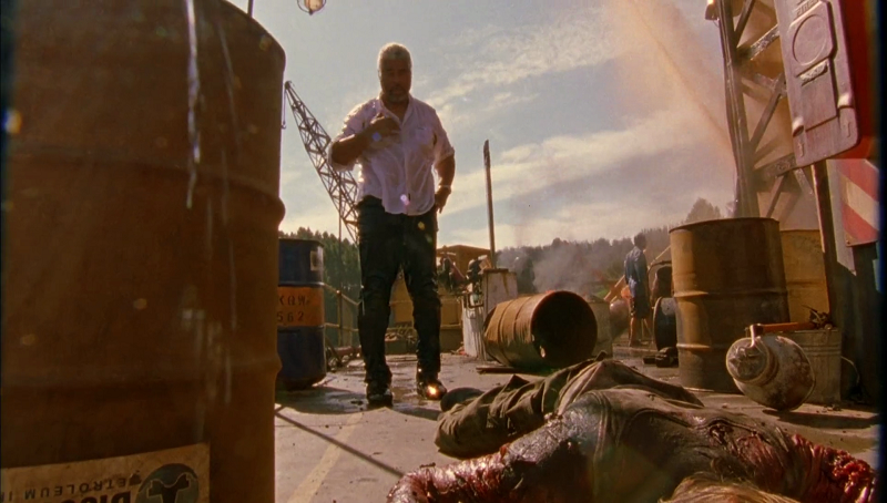 Plot: Red Water – A group of oil workers being held hostage by a group of gangsters on a small oil rig are attacked by a freshwater bull shark.